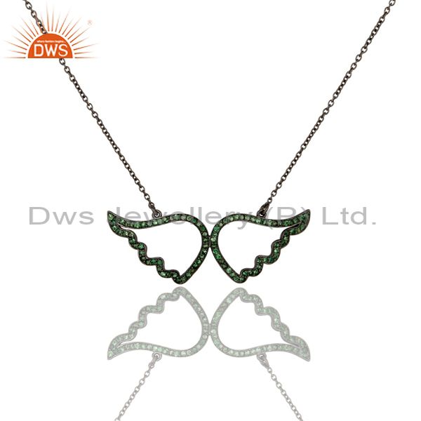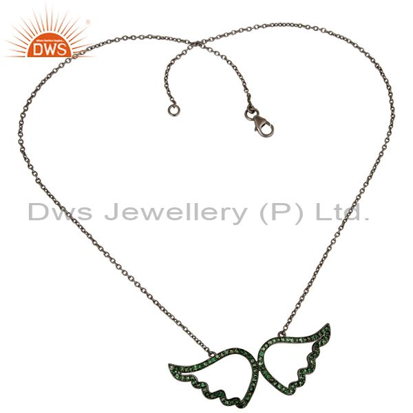 Black Oxidized with Tsavourite 925 Sterling Silver Chain Pendant Necklace
