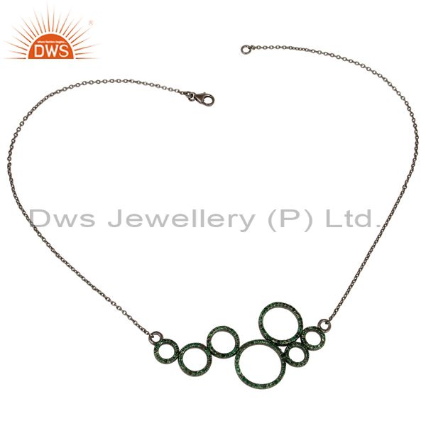 Black Oxidized with Tsavourite 925 Sterling Silver Pendant Necklace