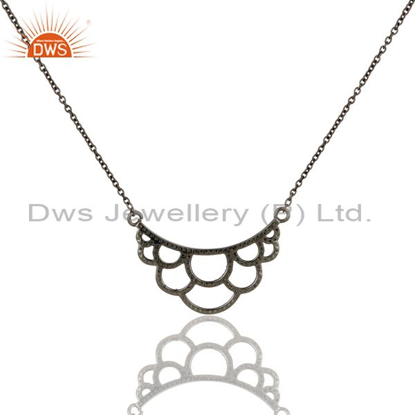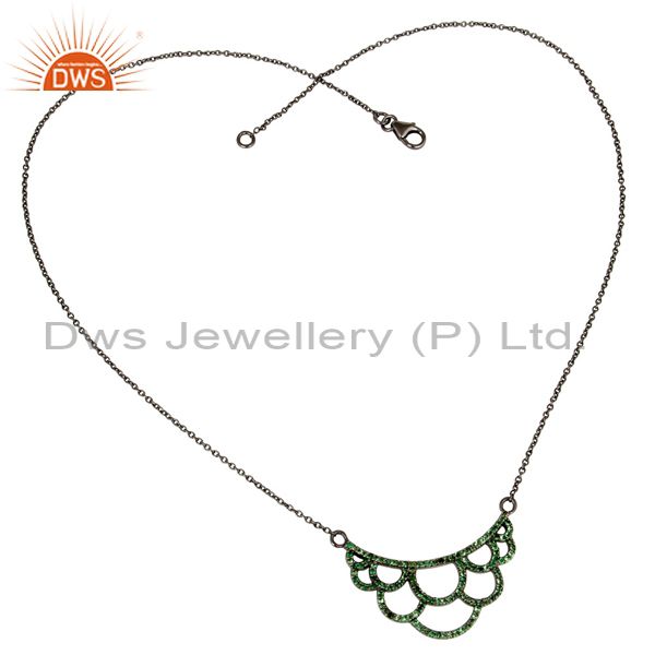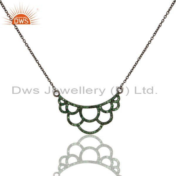 Black Oxidized With Tsavourite Sterling Silver Crown Chain Pendant Necklace