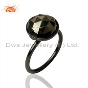 Black Rhodium Plated Silver Pyrite Gemstone Womens Chain Necklace