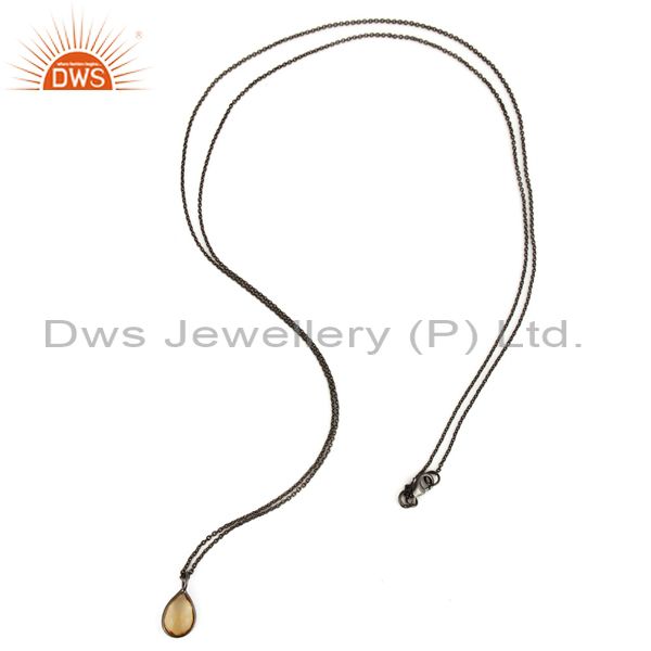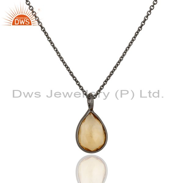 Black Rhodium Plated Sterling Silver Citrine Gemstone Pendant With Chain