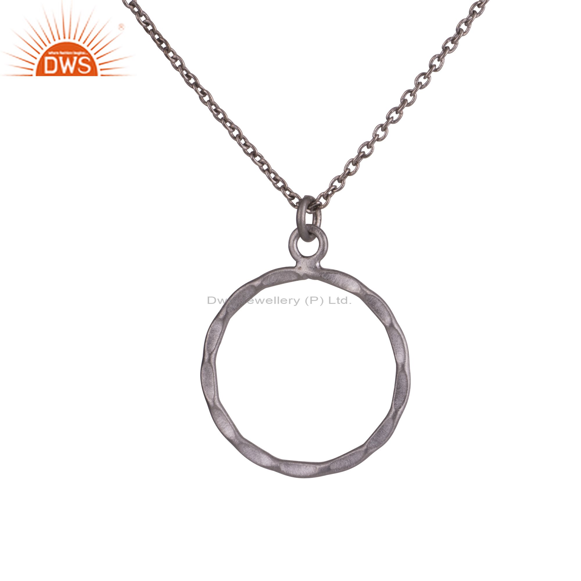 Black Rhodium Plated Sterling Silver Hammered Circle Pendant With 16" Inch Chain