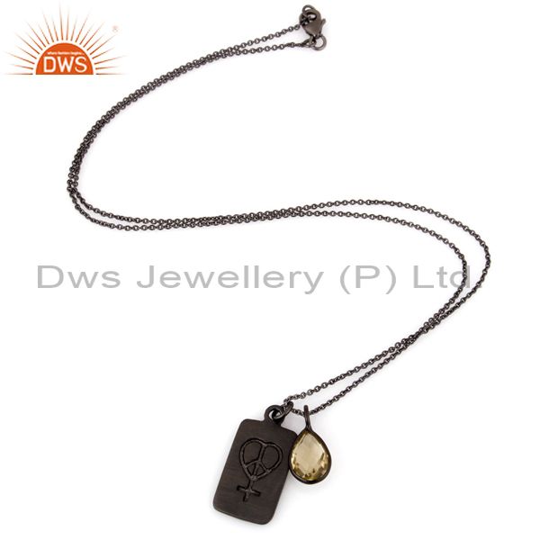 Black Rhodium Plated Sterling Silver Lemon Topaz Bezel Set Pendant With Chain