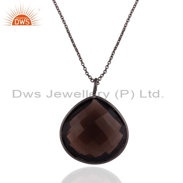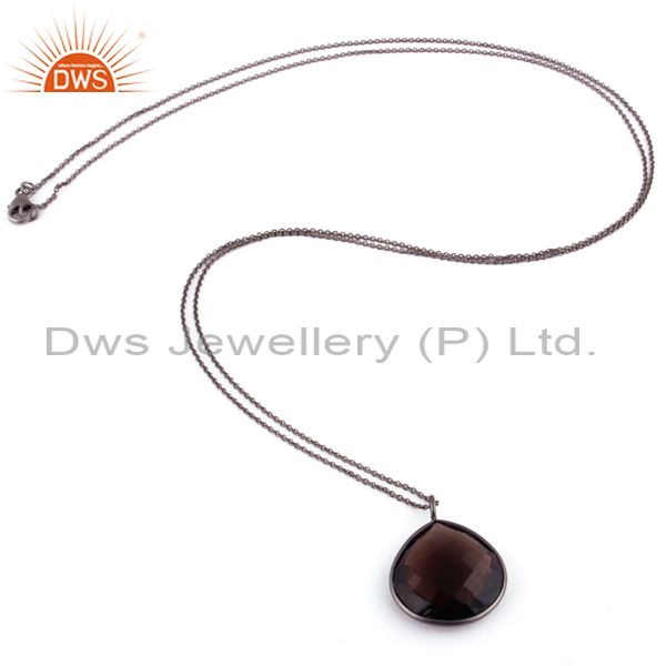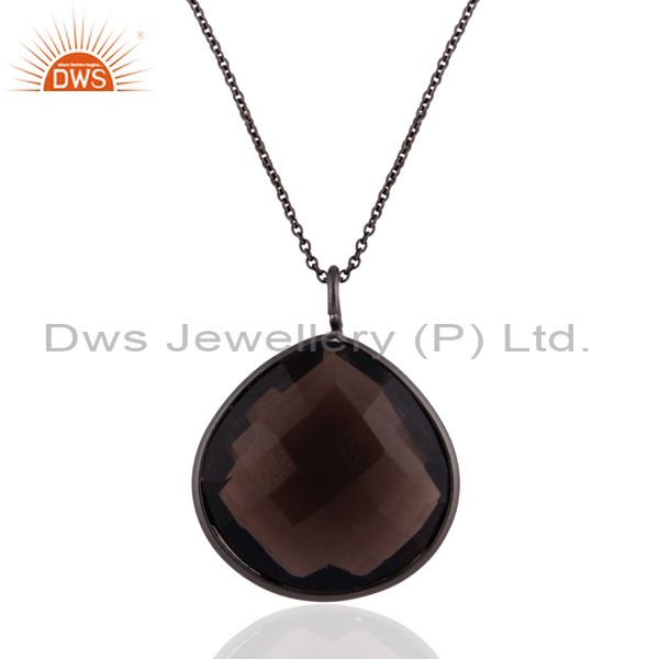 Black Rhodium Plated Sterling Silver Natural Smoky Quartz Drop Pendant With Chai