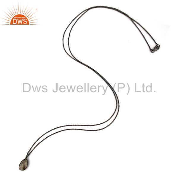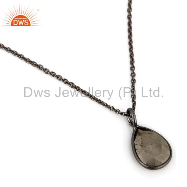 Black Rhodium Plated Sterling Silver Pyrite Bezel Set Pendant With Chain