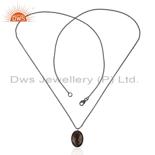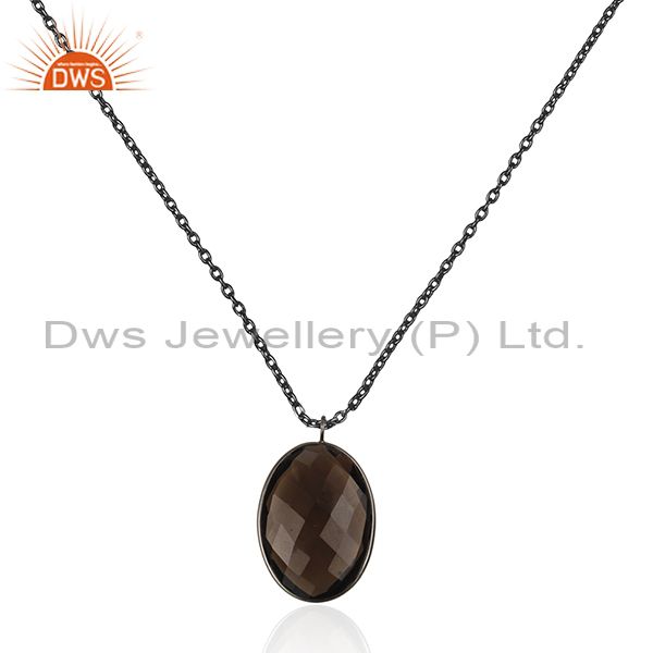 Black Rhodium Plated Sterling Silver Smoky Quartz Bezel Set Pendant With Chain
