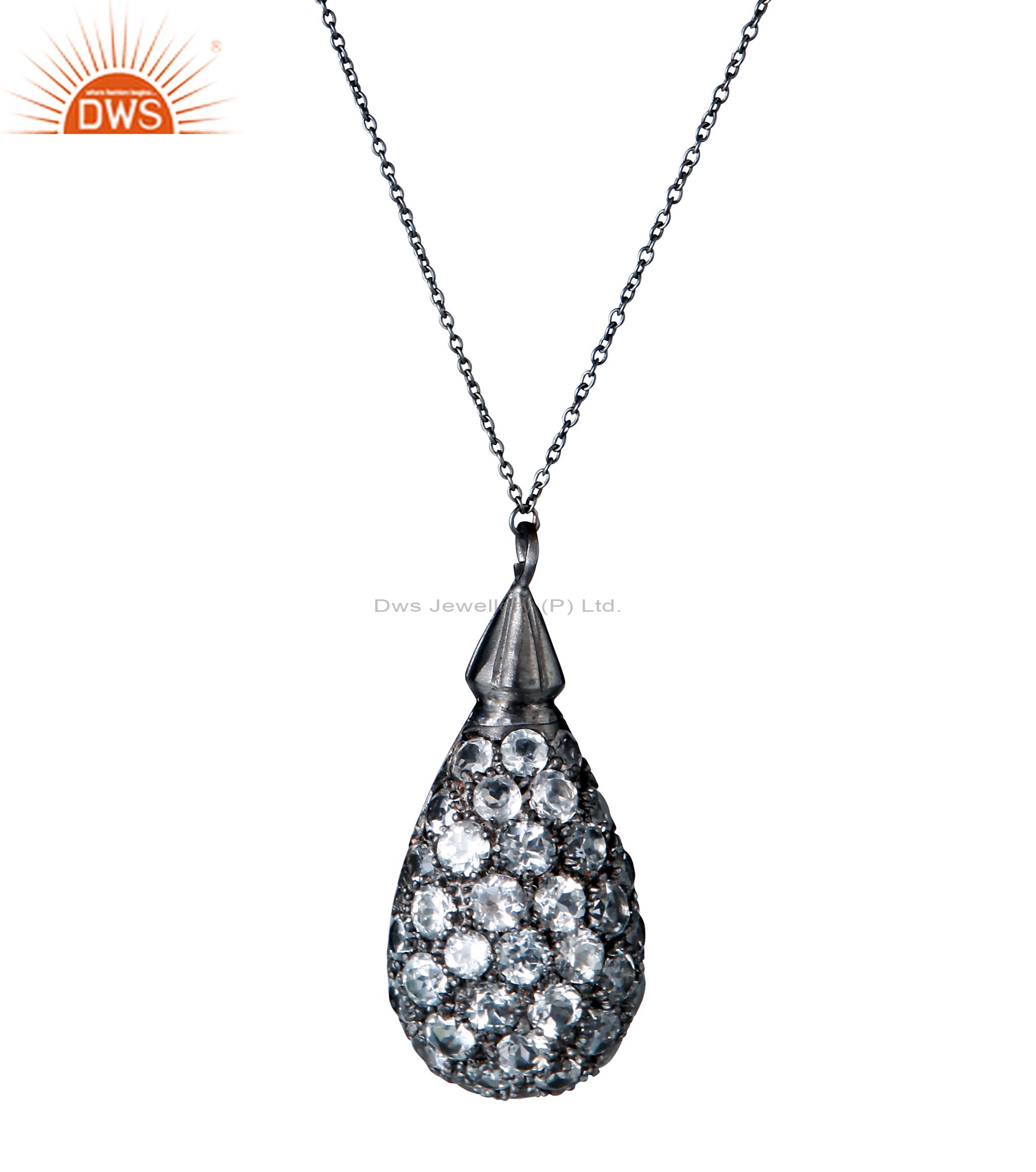 Black Rhodium Plated Sterling Silver White Topaz Drop Pendant With Chain