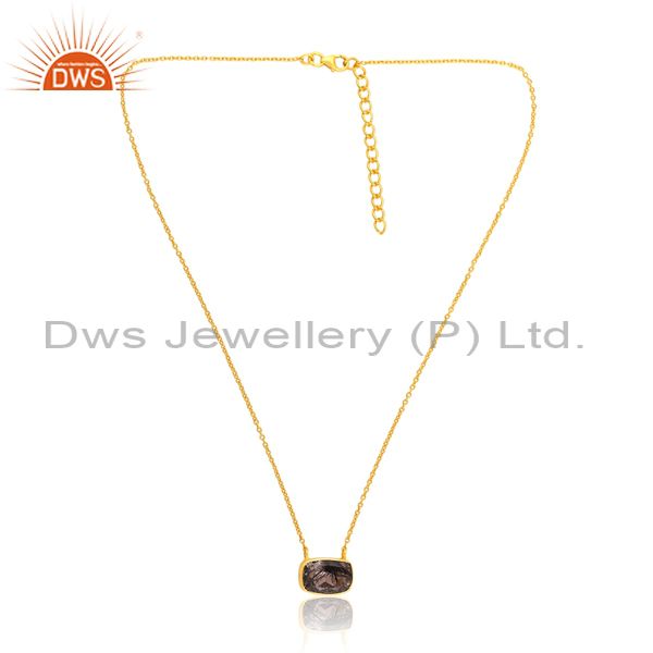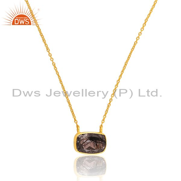 Black Rutile Set Pendant And Set 18K Gold On Silver Chain