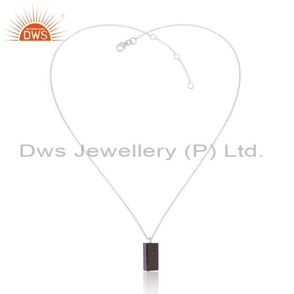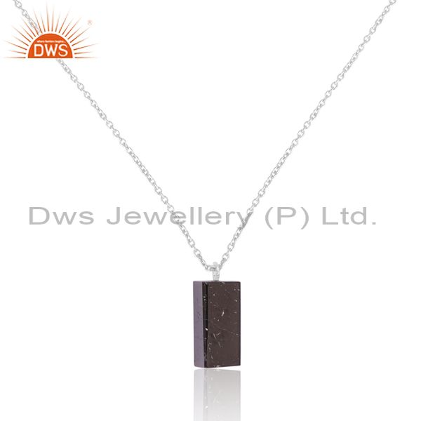 Black Tourmaline Cube Pendant And Fine Sterling Silver Chain