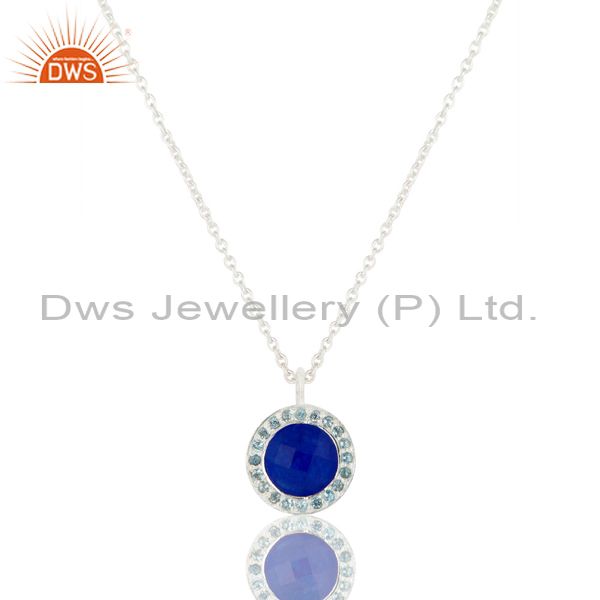 Blue Aventurine and Blue Topaz Sterling Silver Gemstone Pendant with Chain