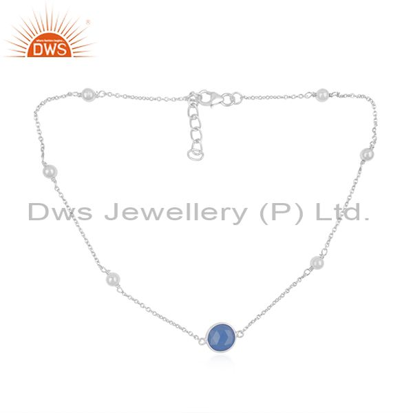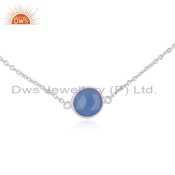 Blue Chalcedony 925 Sterling Fine Silver Chain Necklace Manufacturer India