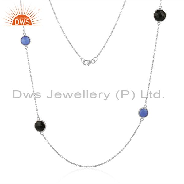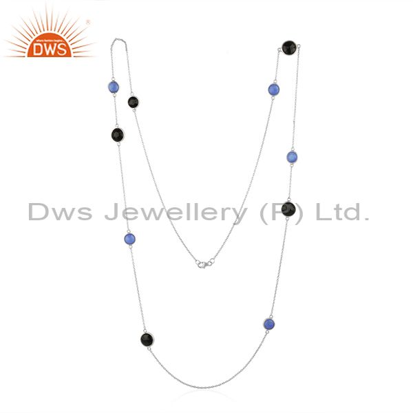Blue Chalcedony and Onyx Black Gemstone 925 Silver Necklace Wholesale