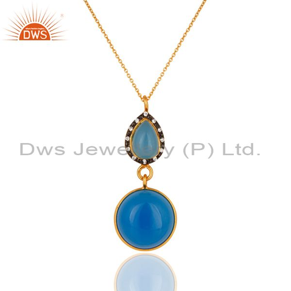 Blue Chalcedony Drop Pendant Necklace Made In Sterling Silver With Gold Plated