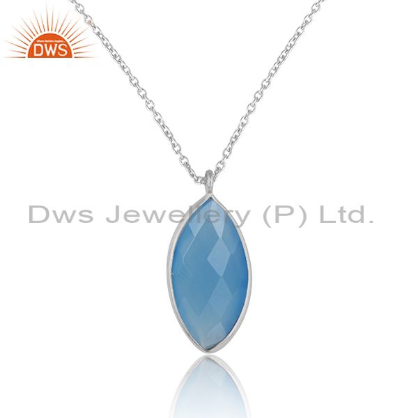 Blue Chalcedony Gemstone Sterling Fine Silver Chain Pendants