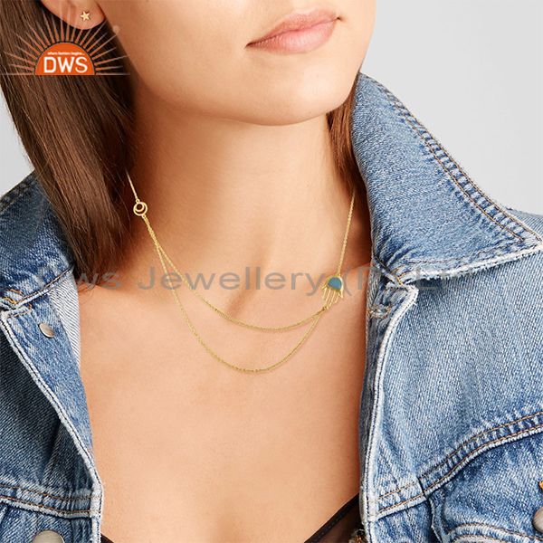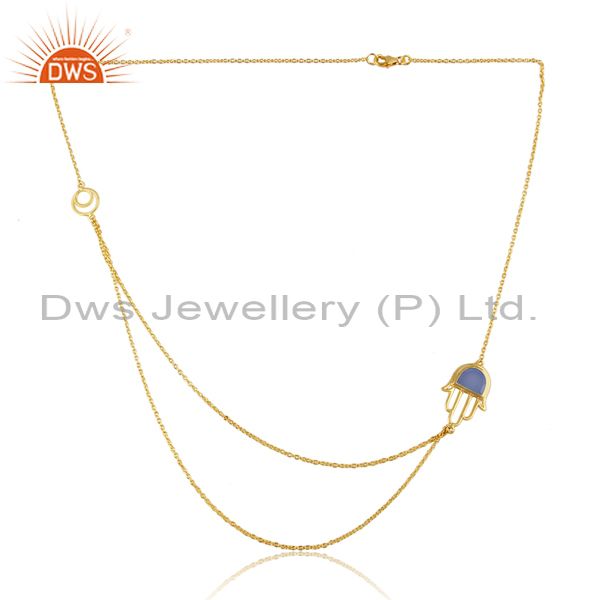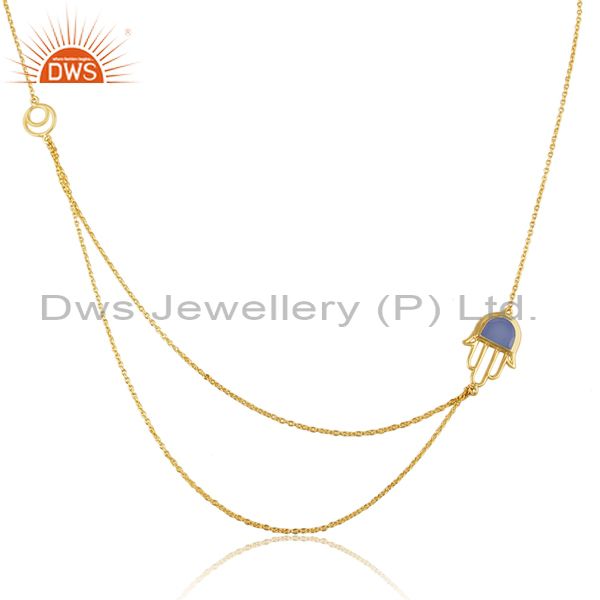 Blue Chalcedony Set Hamsa Pendant And Double Chain Necklace