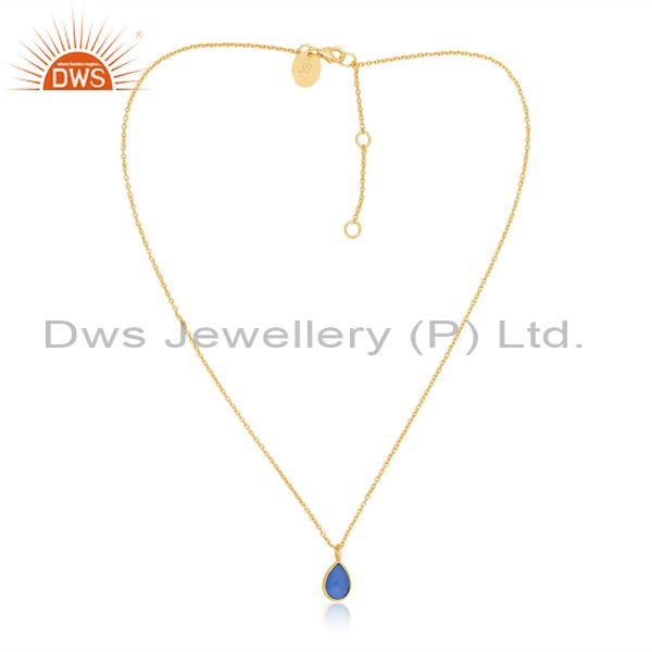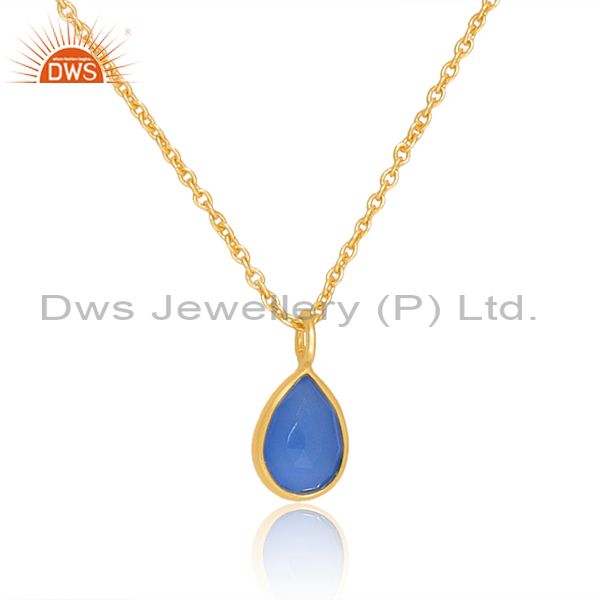 Blue Chalcedony Set Pendant And Gold On 925 Silver Necklace