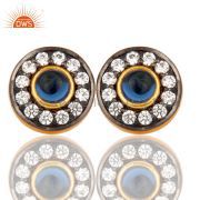 Blue Corrundum & White Zirconia Charm Little 18k Gold Plated Brass Chain Pendant