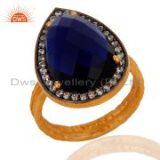 Blue Corundum 925 Sterling Silver With Gold Plated Gemstone Pendant Necklace