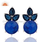Blue Corundum And Aventurine Gemstone Sterling Silver Pendant With Chain