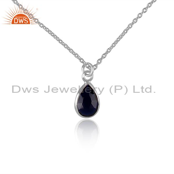 Blue Corundum Drop Shape Bezel Pendent Chain Pendent Jewelry