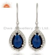 Blue Corundum White Topaz 925 Sterling Silver Chain Pendant Necklace Jewelry