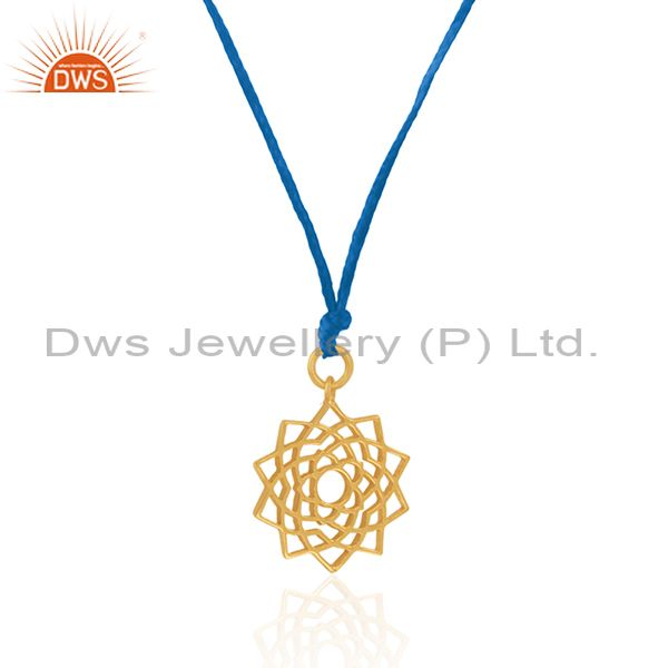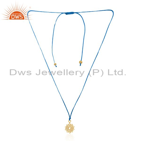 Blue Macrame Cord Sahasrara Chakra Gold Plated Sterling Silver Pendants