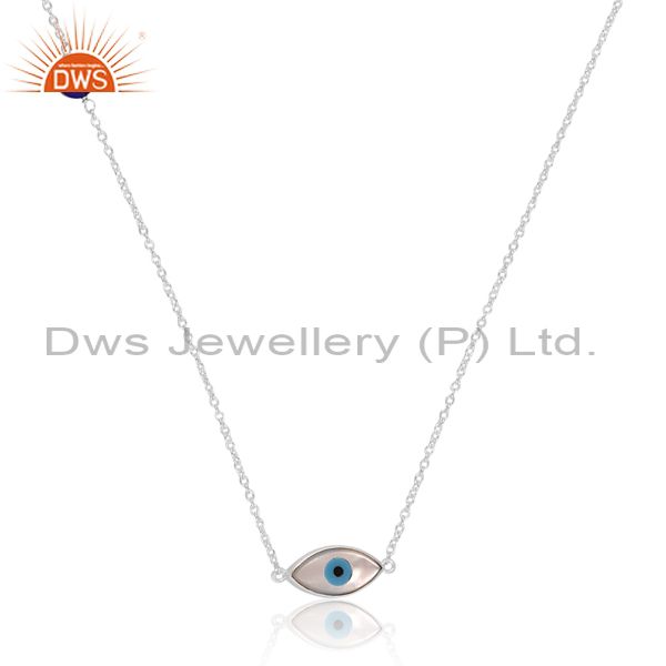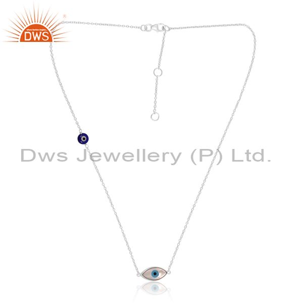 Blue Resin Coin & Pearl On White Silver Pendant & Necklace