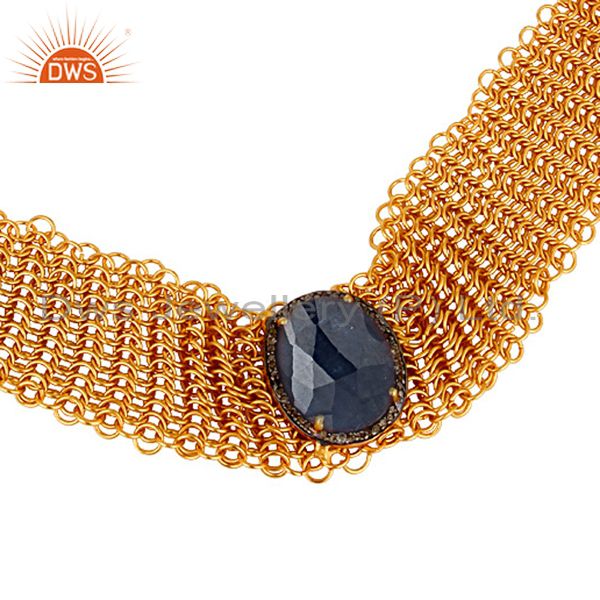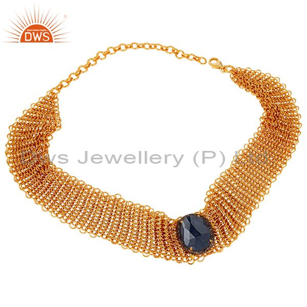 Blue Sapphire and Diamond 18K Gold Plated Sterling Silver Link Chain Necklace