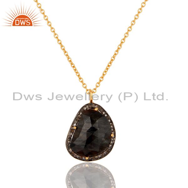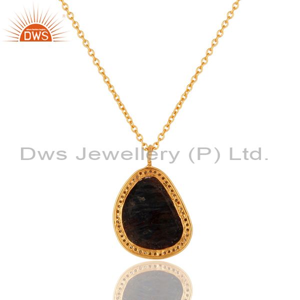 Blue Sapphire Unshape And Pave Diamond Gold Plated Sterling Silver Necklace