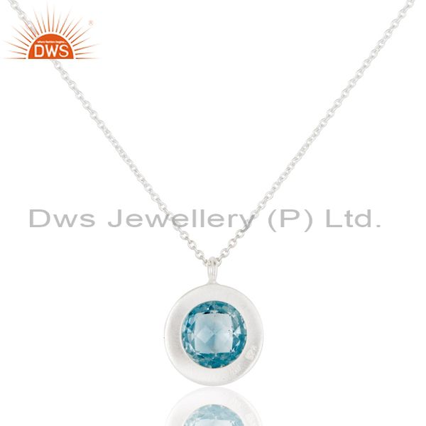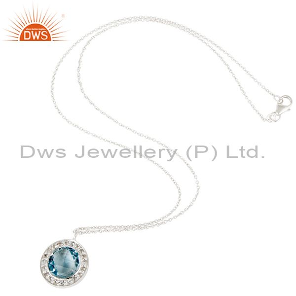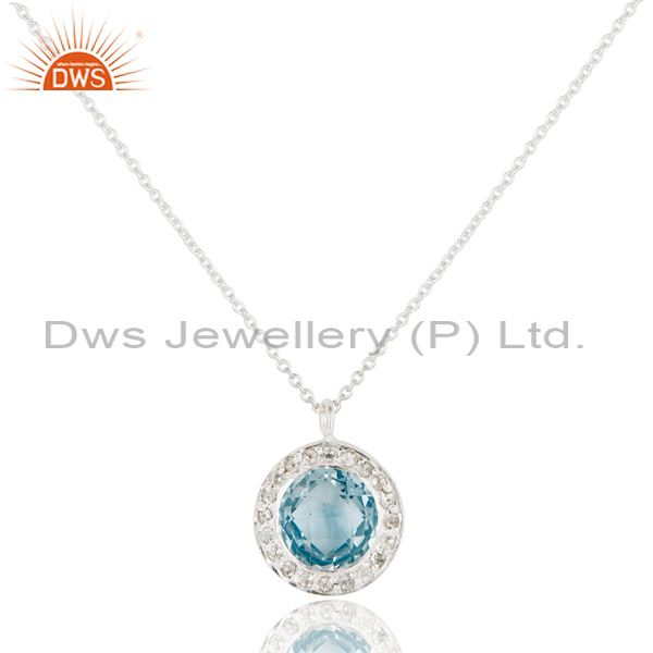 Blue Topaz & White Topaz Gemstone Chain Pendant With Solid 925 Sterling Silver