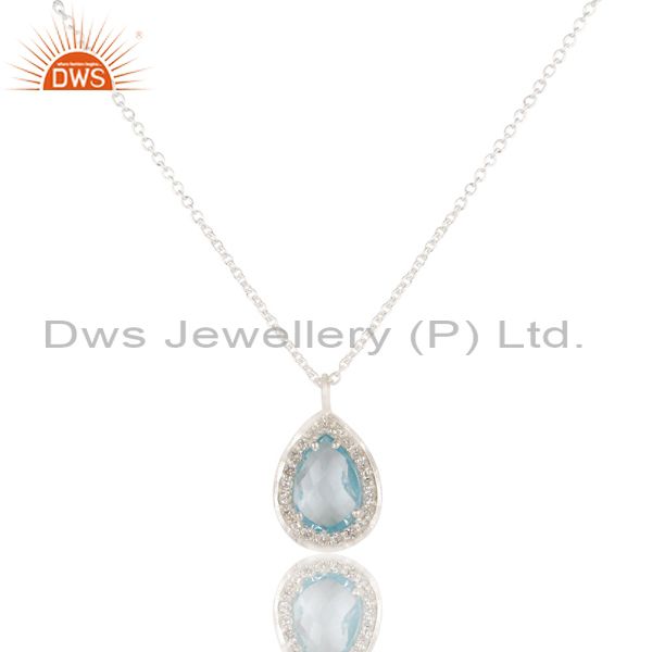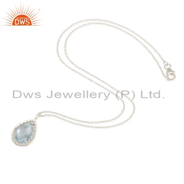 Blue Topaz & White Topaz Solid 925 Sterling Silver Chain Pendant Necklace