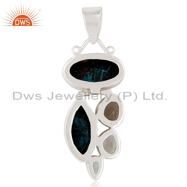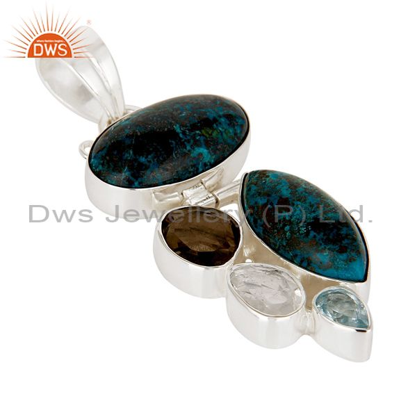 Blue Topaz, Chrysocola, Amethyst & Smokey Topaz 925 Sterling Silver Pendant