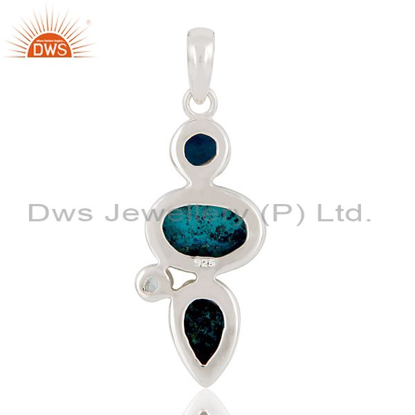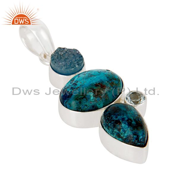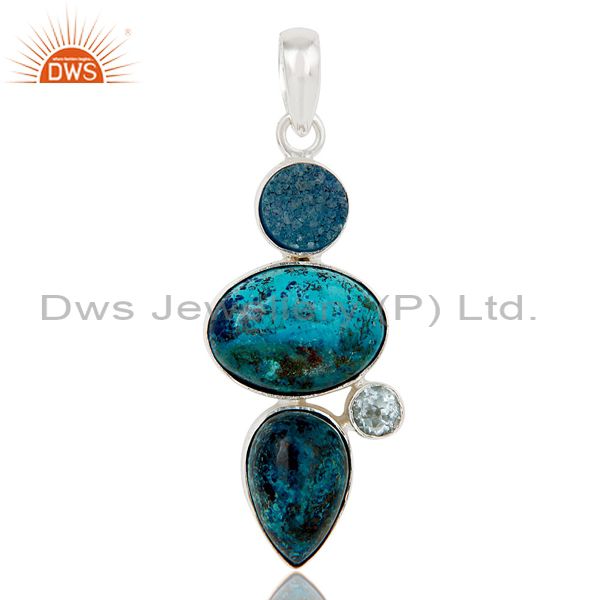 Blue Topaz, Crysocola & Natural Druzy Handmade Sollid Sterling Silver Pendant
