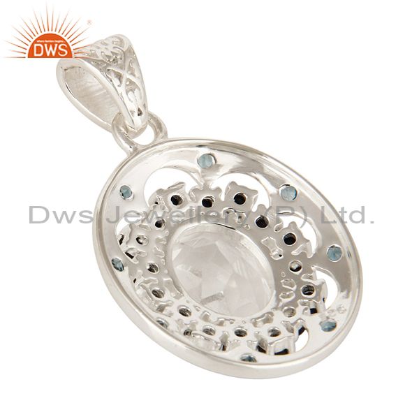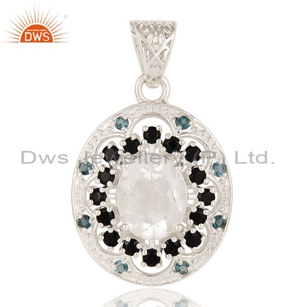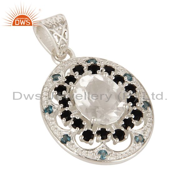 Blue Topaz, Crystal Quartz And Black Onyx Sterling Silver Stone Cluster Pendant