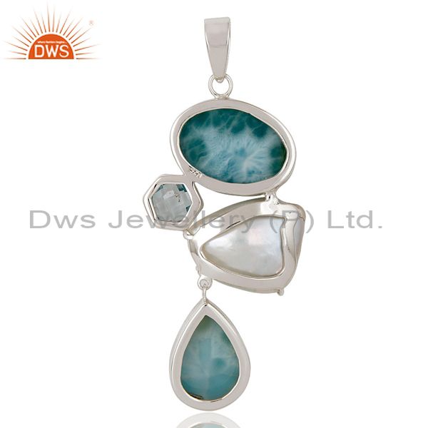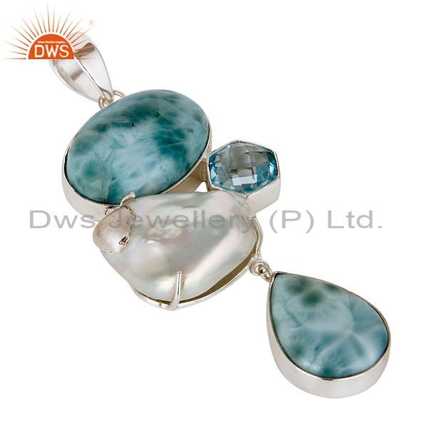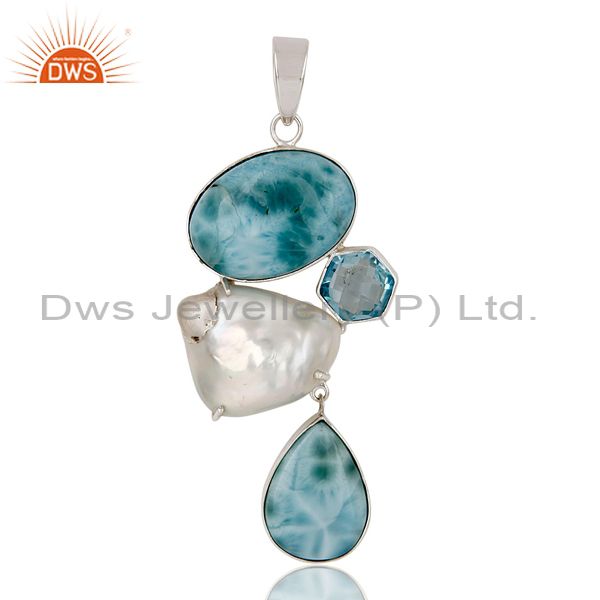Blue Topaz, Larimar & Fresh Water Pearl Sterling Silver Artisan Pendant
