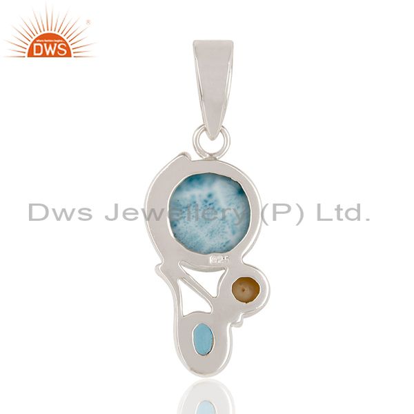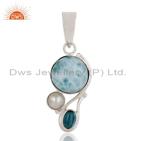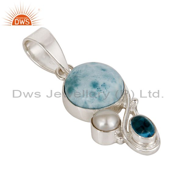 Blue Topaz, Pearl & Larimar 925 Silver Sterling Pendant