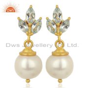 Blue Topaz Pearl 18K Gold Plated Sterling Silver Chain Pendant Necklace Jewelry