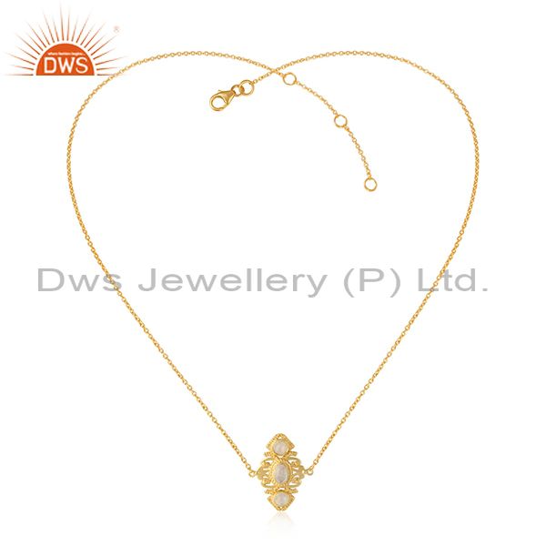 Boho Necklace in Yellow Gold On Silver 925 and Rainbow Moonstone