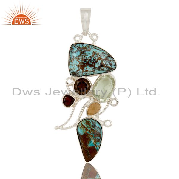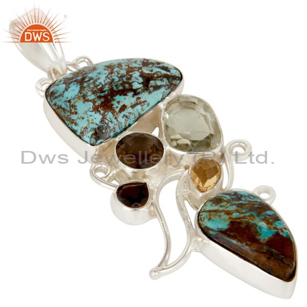 Boulder Turquoise, Prasiolite, Smokey Sterling Silver Designer Pendant