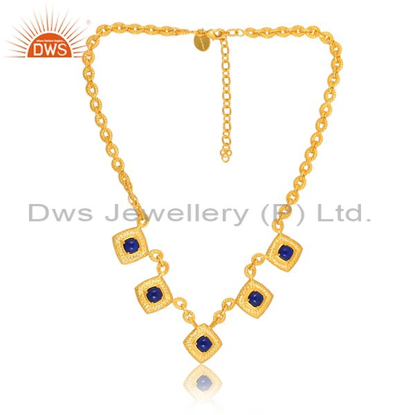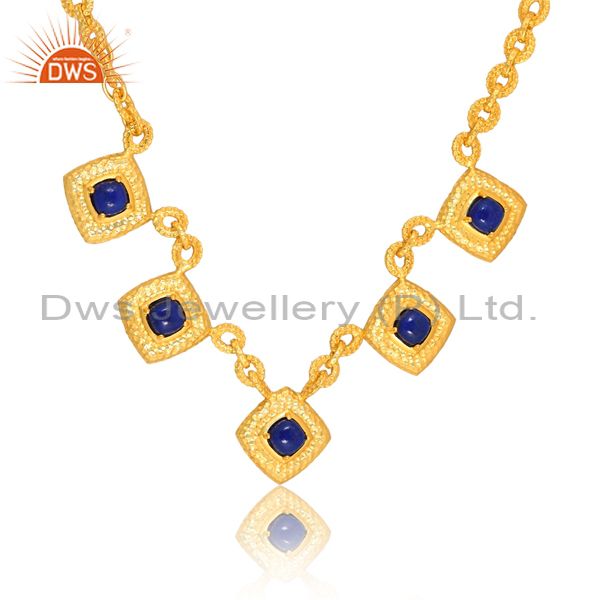 Brass 18K Gold Pendant & Necklace With Lapis Cabochon Gem