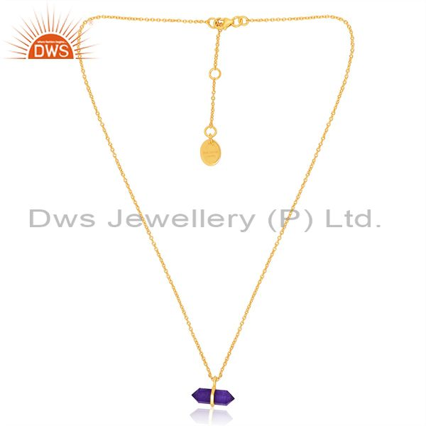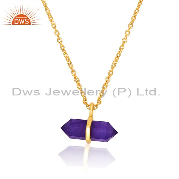 Brass Gold Chain & Pendant With Aventurine Natural Amethyst