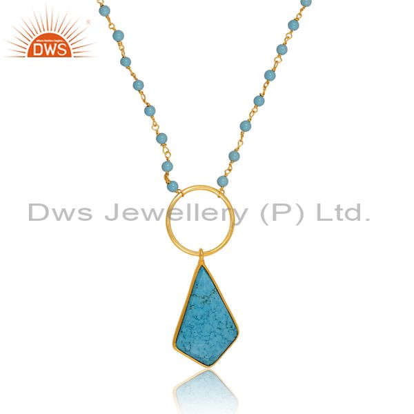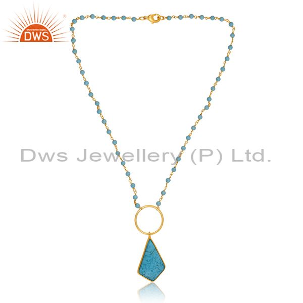 Brass Gold Chain And Pendant With Turquoise Many Cut Stone
