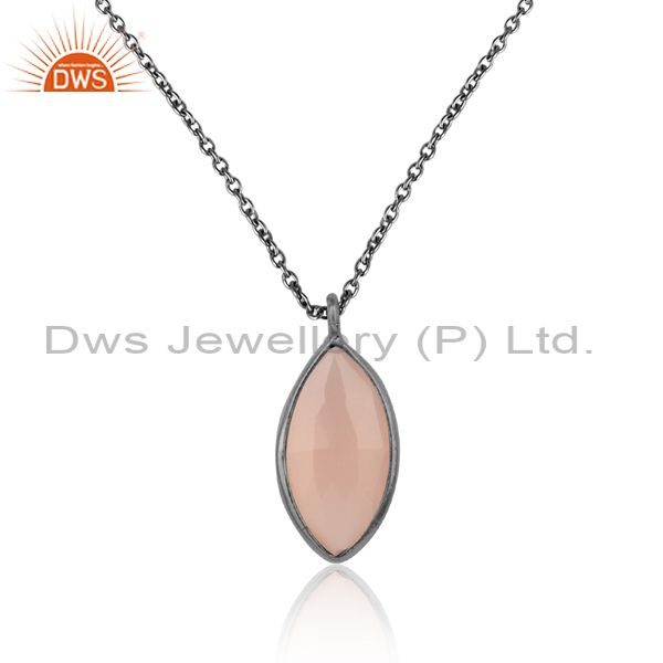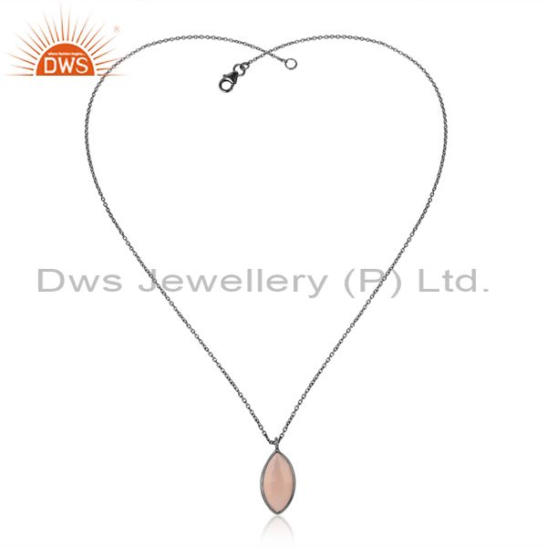 Briolette Rose Chalcedony Pendant With Black On Silver Chain