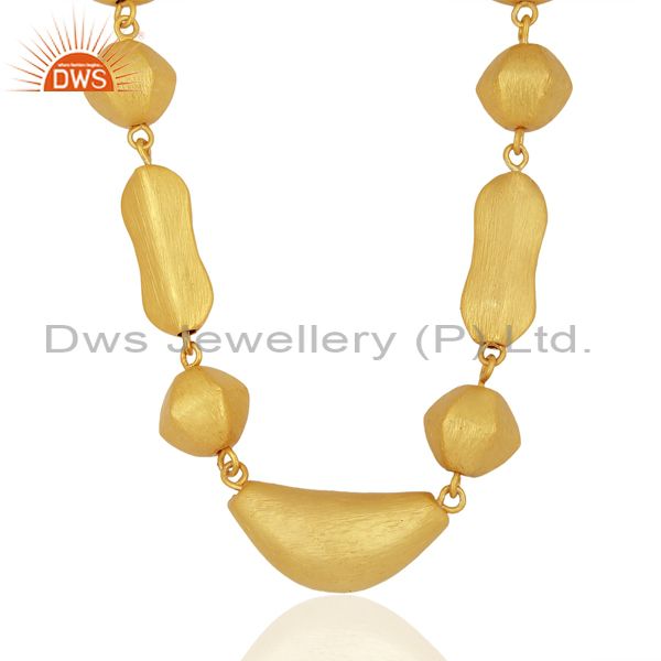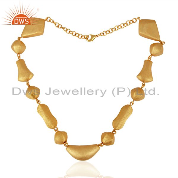 Brushed Finish 24K Yellow Gold Plated Brass Designer Statement Necklace