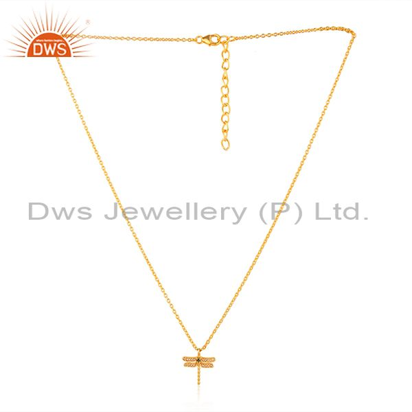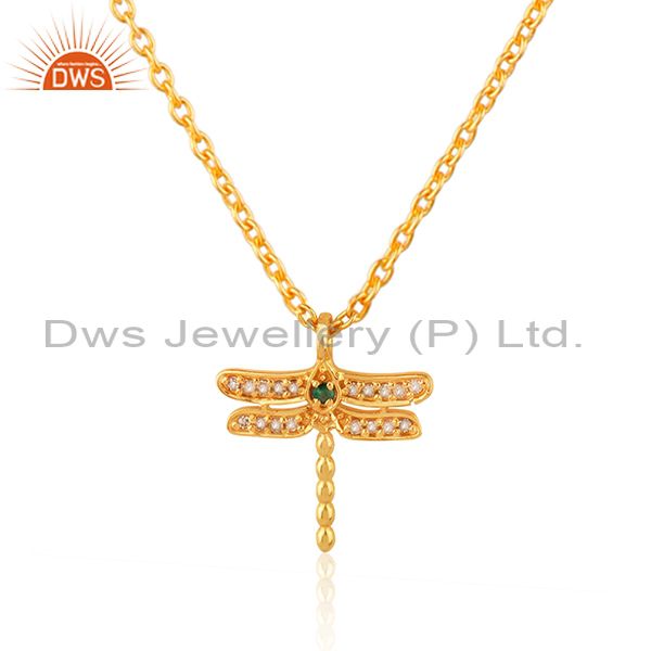 Butterfly Design Pendant In Gold Plated Silver, Emerald And Diamond