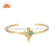 Cactus Designer Gold On Silver 925 Necklace With Arizona Turquoise