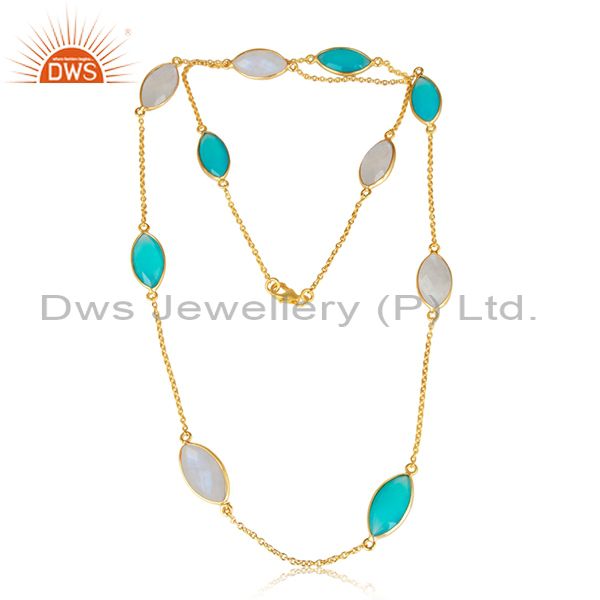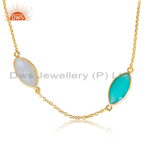 Chalcedony Rainbow Moonstone Designer Gold Plated Silver Necklace