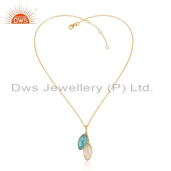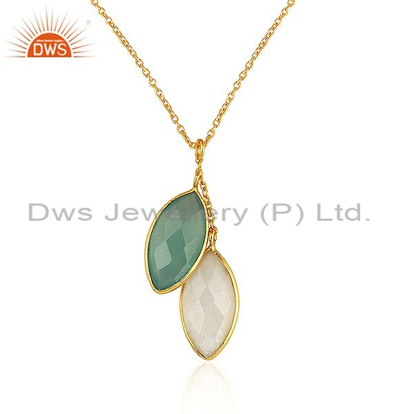 Chalcedony Rainbow Moonstone Gemstone Gold Plated Silver Chain Pendant