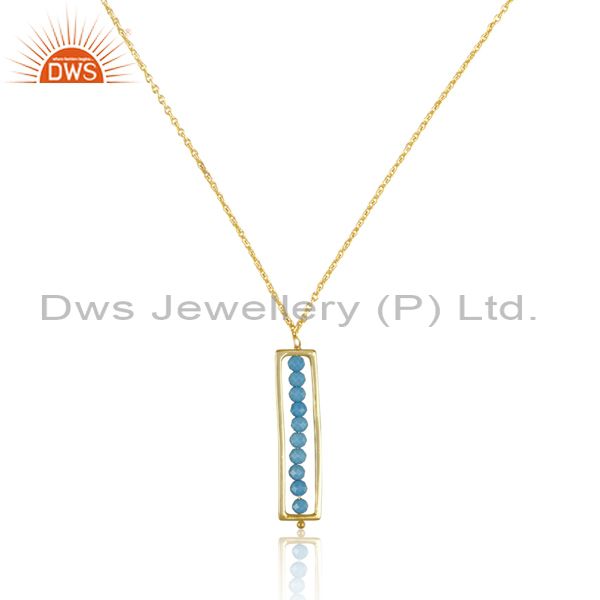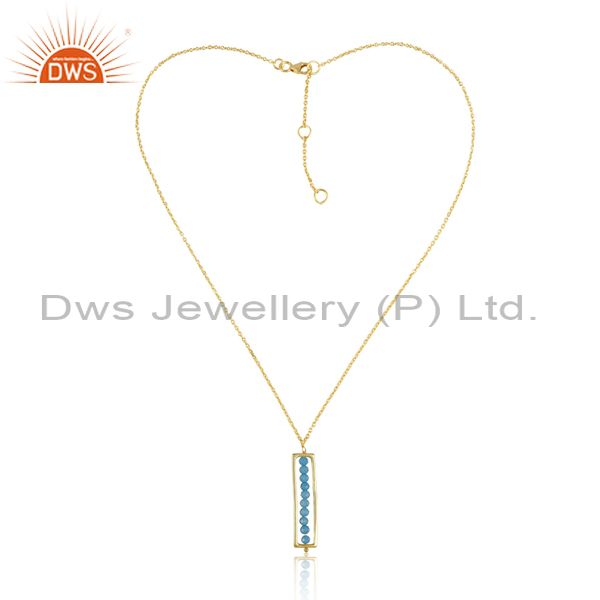 Chinese Turquoise Matrix Pendant 18K Gold On Silver Necklace