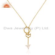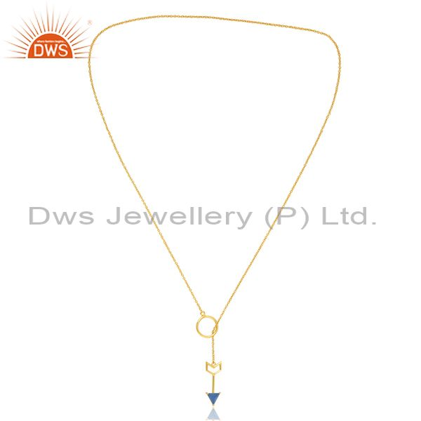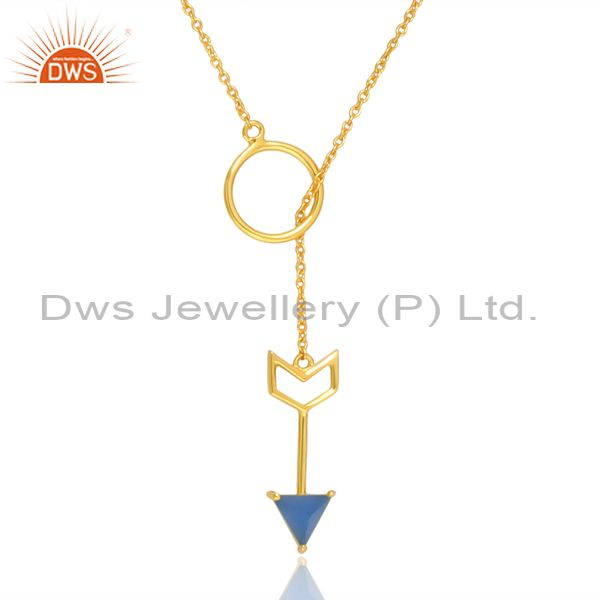 Circle Loop Chain In Gold With Arrow Blue Chalcedony Drop